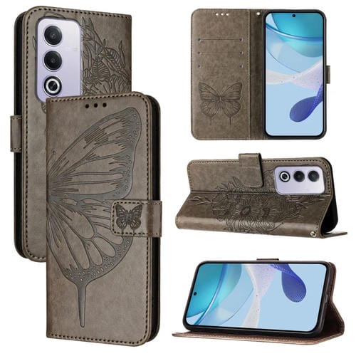 Para Oppo A3 Pro 5G Funda de Cuero para Teléfono con Mariposa En Relieve Global (Gris)