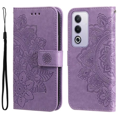 Para Oppo A3 Pro 5G Global / India Funda para Teléfono de Cuero con Estampado de Flores de Siete Pétalos (Púrpura Claro)