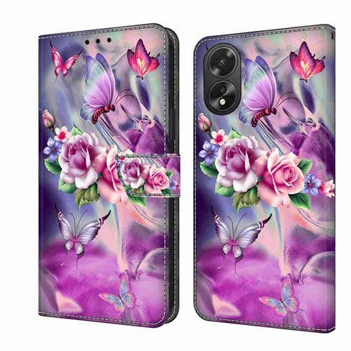 Para Oppo A38 4G Crystal 3D Funda Protectora de Cuero para Teléfono a Prueba de Golpes (Mariposa)