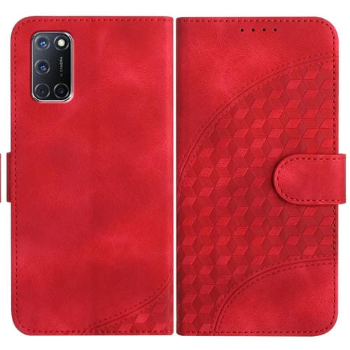 Para Oppo A52 / A72 / A92 Yx0060 Funda de Cuero para Teléfono con Relieve y Cabeza de Elefante con Cordón (Rojo)