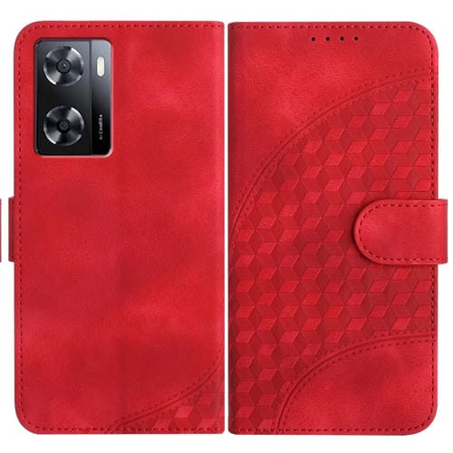 Para Oppo A57 4G Yx0060 Funda de Cuero para Teléfono con Relieve y Cabeza de Elefante con Cordón (Rojo)