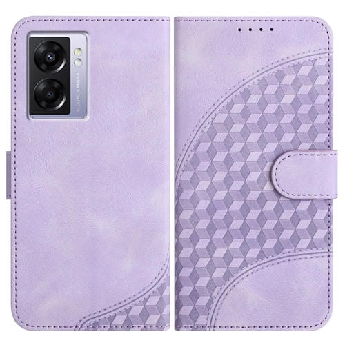 Para Oppo A57 5G / A77 5G / A57 4G Global Yx0060 Funda de Cuero para Teléfono con Relieve y Cabeza de Elefante con Cordón (Púrpura Claro)