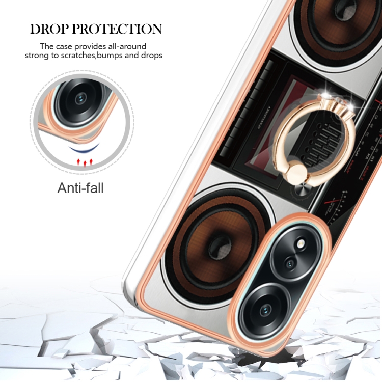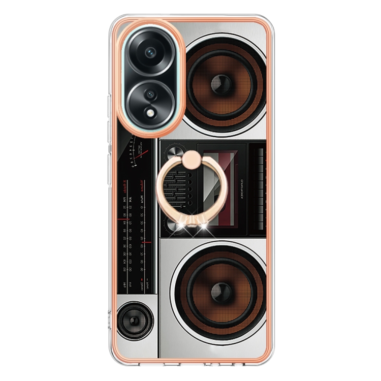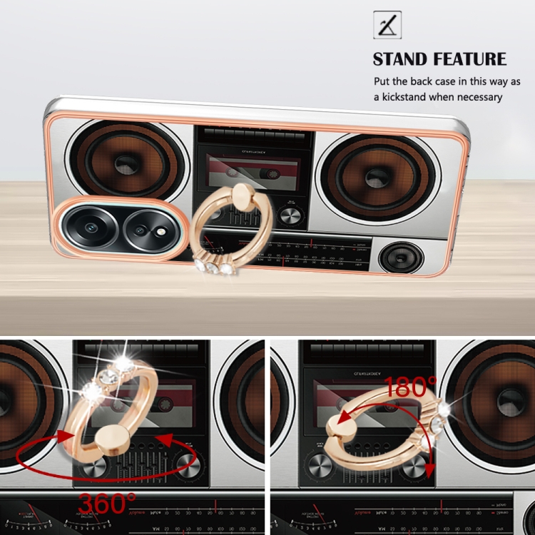 Para Oppo A58 4G Estuche para Teléfono Imd de Doble Cara con Galvanoplastia y Soporte para Anillo (Radio Retro)