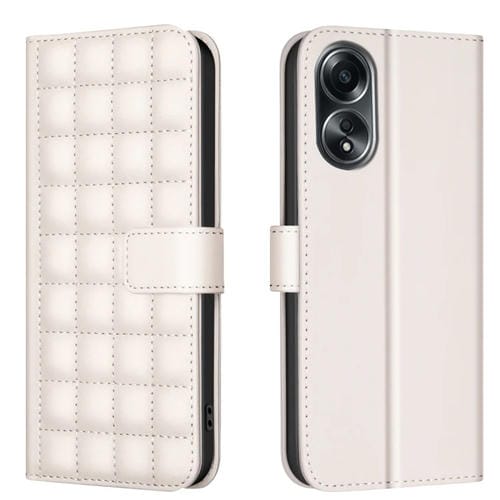 Para Oppo A58 4G Funda de Cuero con Textura Cuadrada (Beige)