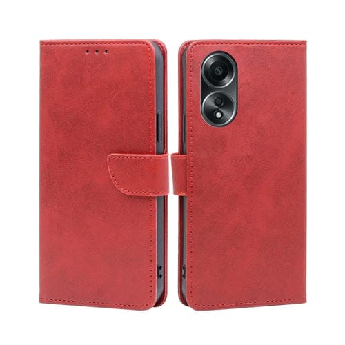 Para Oppo A58 4G Funda para Teléfono de Cuero con Tapa con Hebilla y Textura de Becerro (Rojo)