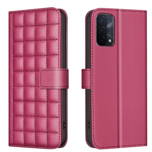 Para Oppo A74 5G / A93 5G / A54 5G Funda para Teléfono de Cuero con Textura Cuadrada (Rojo)