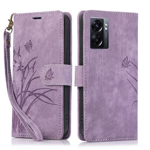 Para Oppo A77 4G / A77S Funda para Teléfono de Cuero con Relieve de Mariposa Orquídea (Púrpura)