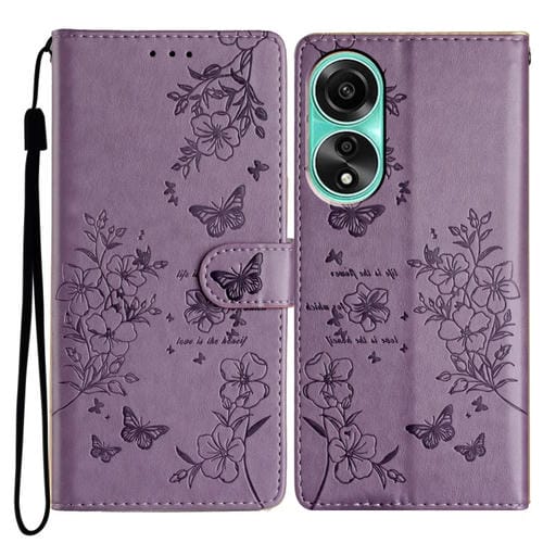 Para Oppo A78 4G Butterfly Love Flower Funda de Cuero para Teléfono En Relieve (Púrpura)