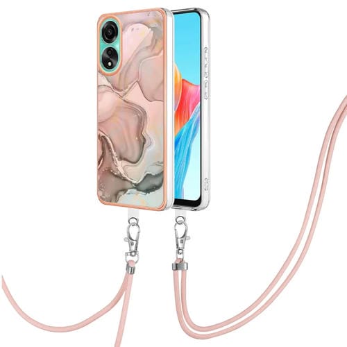 Para Oppo A78 4G Caja de Teléfono Imd de Doble Cara de Mármol Galvanizado con Cordón (Oro Rosa 015)