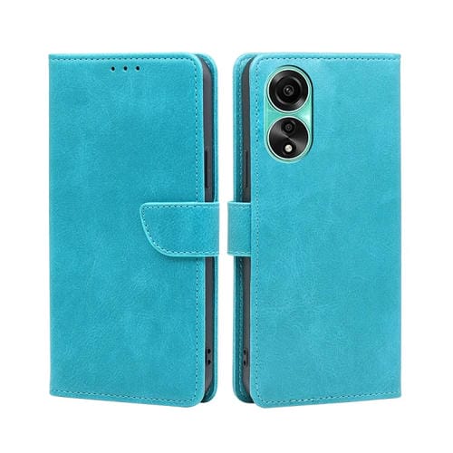 Para Oppo A78 4G Funda para Teléfono de Cuero con Tapa con Hebilla y Textura de Becerro (Azul Claro)