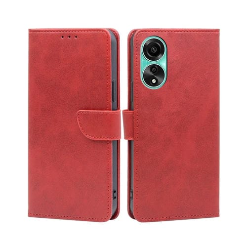 Para Oppo A78 4G Funda para Teléfono de Cuero con Tapa con Hebilla y Textura de Becerro (Rojo)
