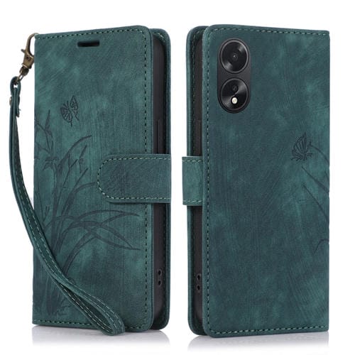 Para Oppo A78 4G Orchid Butterfly Funda de Cuero para Teléfono En Relieve (Verde)