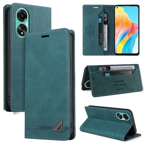 Para Oppo A78 4G Skin Feel Funda de Cuero con Tapa Horizontal con Cepillo Antirrobo y Soporte (Azul)