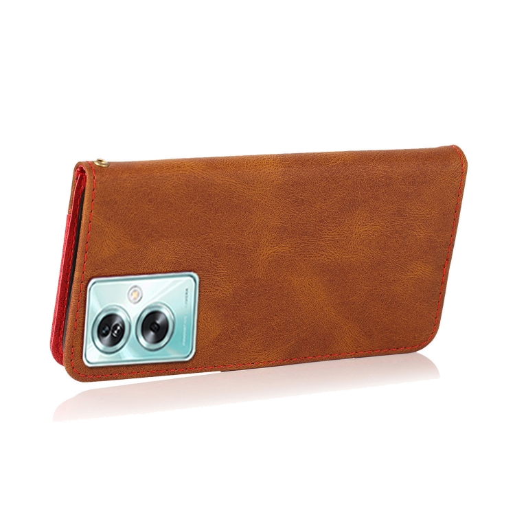 Para Oppo A79 5G Funda de Cuero con Costuras de Dos Colores (Marrón Rojo)