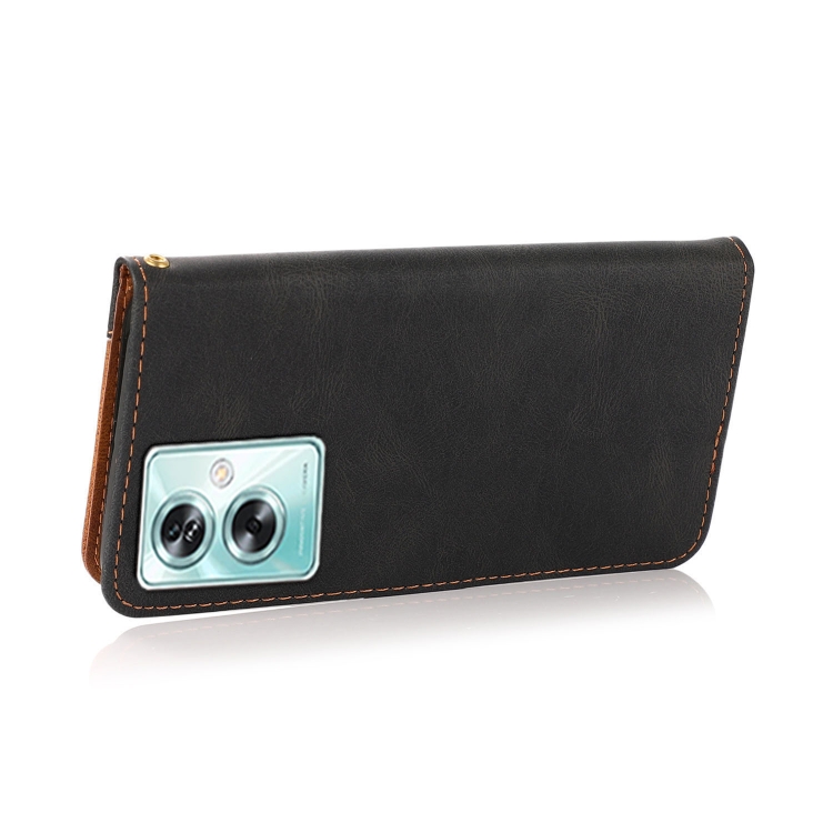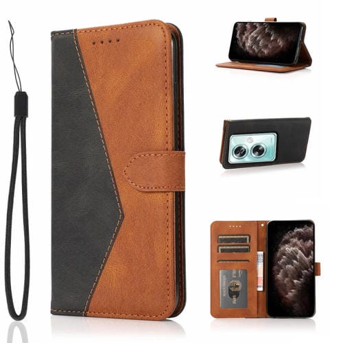 Para Oppo A79 5G Funda de Cuero con Costuras de Dos Colores (Negro Marrón)