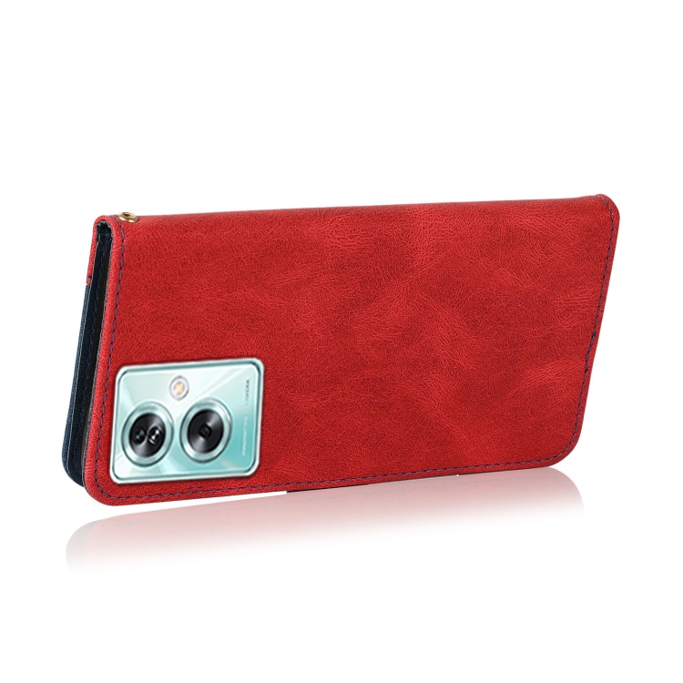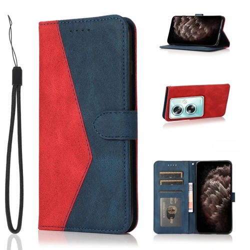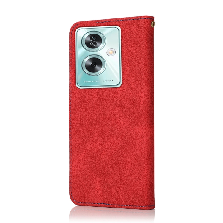 Para Oppo A79 5G Funda de Cuero con Costuras de Dos Colores (Rojo Azul)