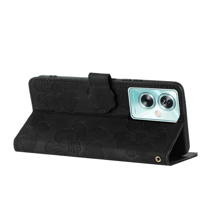 Para Oppo A79 5G Funda de Cuero para Teléfono con Estampado de Flores (Negro)