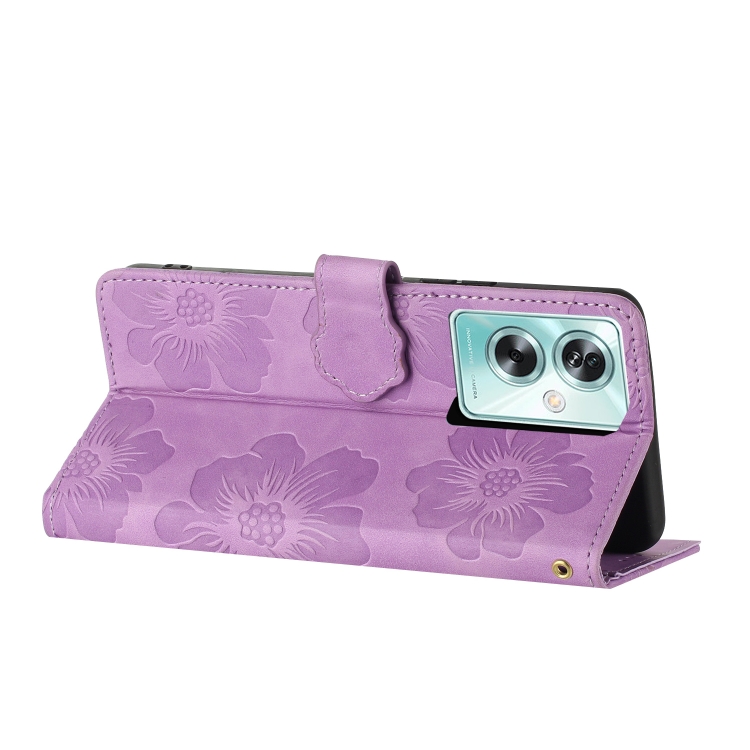 Para Oppo A79 5G Funda de Cuero para Teléfono con Estampado de Flores (Púrpura)