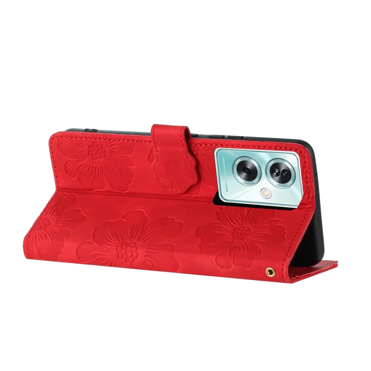 Para Oppo A79 5G Funda de Cuero para Teléfono con Estampado de Flores (Rojo)