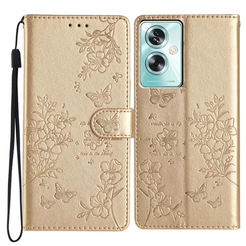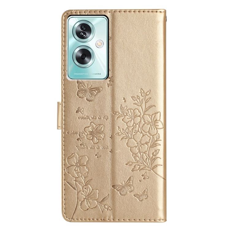 Para Oppo A79 / A2 5G Funda para Teléfono de Cuero con Relieve de Flor de Amor y Mariposa (Dorado)