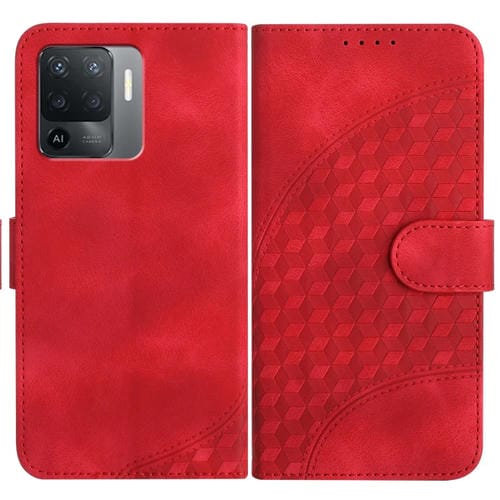 Para Oppo A94 4G/F19 Pro 4G/Reno5 F 4G/Reno5 Lite Yx0060 Funda de Cuero para Teléfono con Relieve y Cabeza de Elefante con Cordón (Rojo)