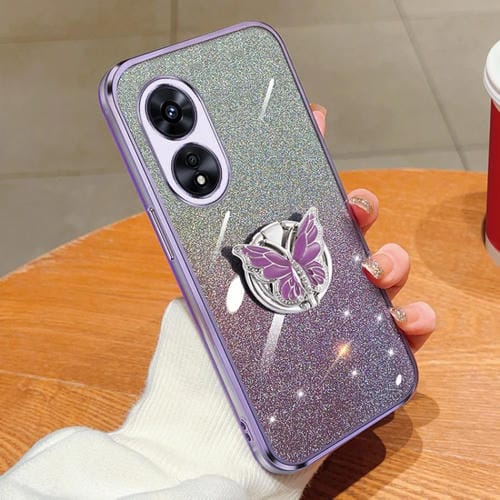 Para Oppo A97 5G Estuche para Teléfono de TPU con Soporte de Mariposa con Brillo Degradado Plateado (Púrpura)