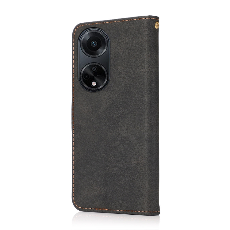 Para Oppo A98 5G Funda de Cuero con Costuras de Dos Colores (Negro Marrón)