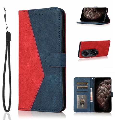Para Oppo A98 5G Funda de Teléfono de Cuero con Costuras de Dos Colores (Rojo Azul)