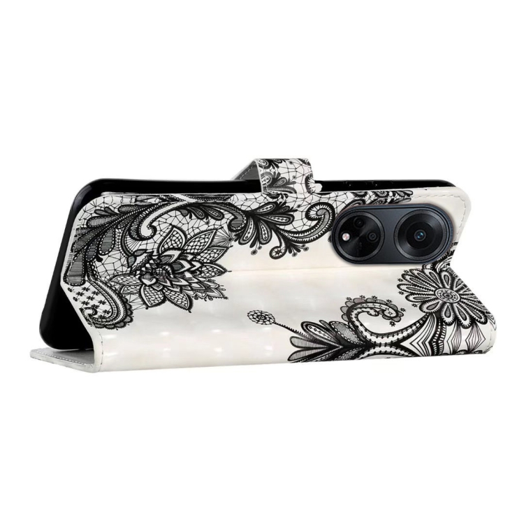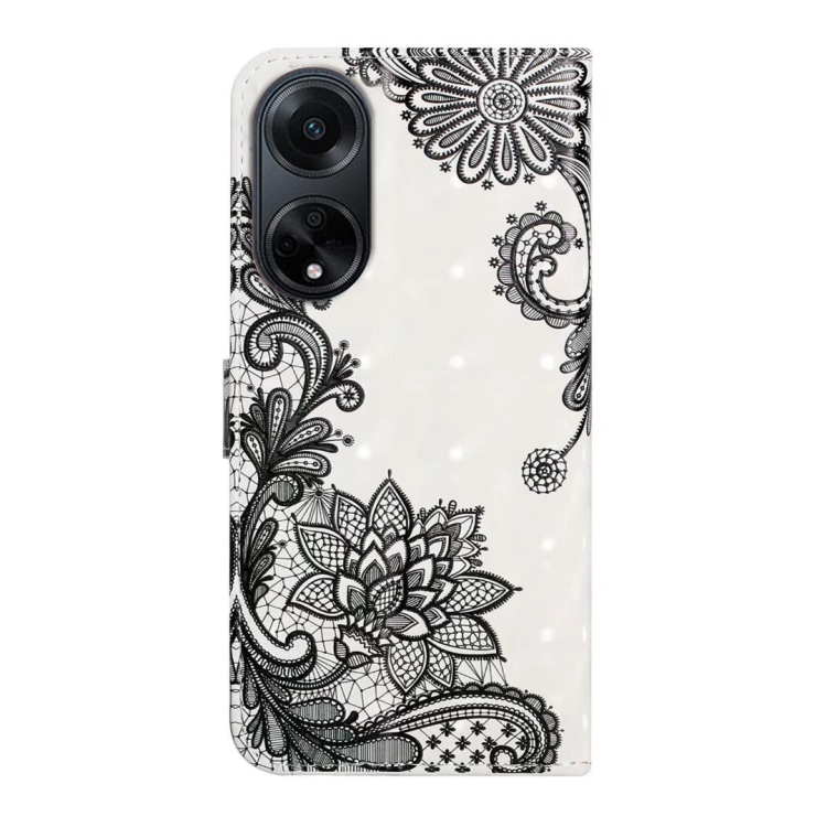 Para Oppo A98 5G Funda de Teléfono de Cuero con Dibujo 3D En Relieve al Óleo (Flor de Encaje)