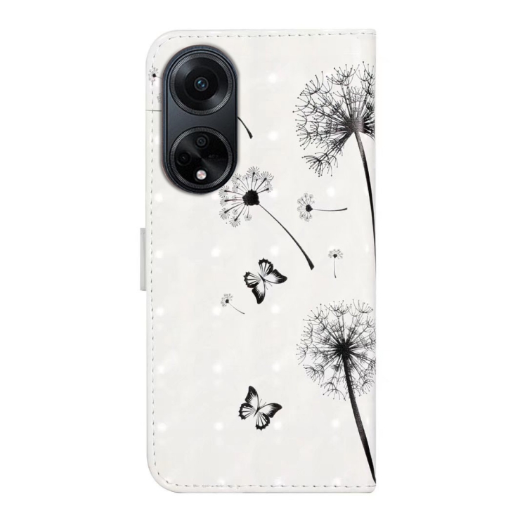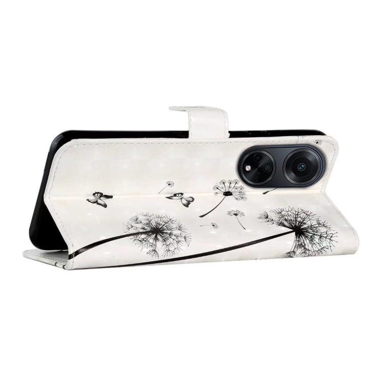 Para Oppo A98 5G Funda de Teléfono de Cuero con Dibujo 3D En Relieve al Óleo (Pareja de Diente de León)