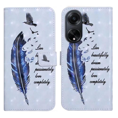 Para Oppo A98 5G Funda de Teléfono de Cuero con Dibujo 3D En Relieve al Óleo (Pluma Azul)