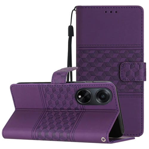 Para Oppo A98 5G Funda de Teléfono de Cuero con Sensación de Piel En Relieve de Diamante (Púrpura)
