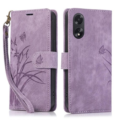 Para Oppo A98 5G Orchid Butterfly Funda de Cuero para Teléfono En Relieve (Púrpura)