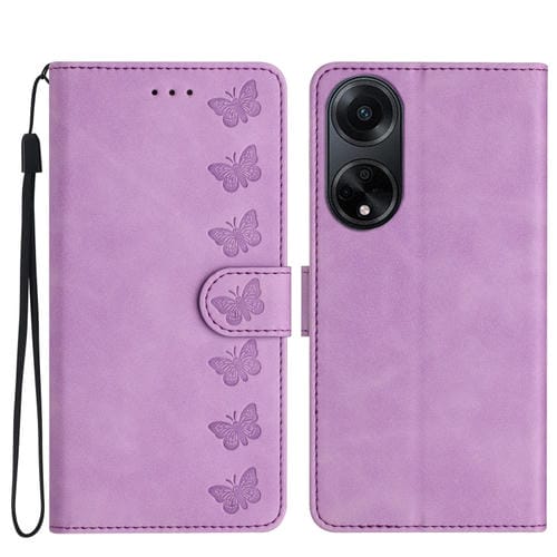 Para Oppo A98 5G Seven Butterflies Funda de Cuero para Teléfono En Relieve (Púrpura)