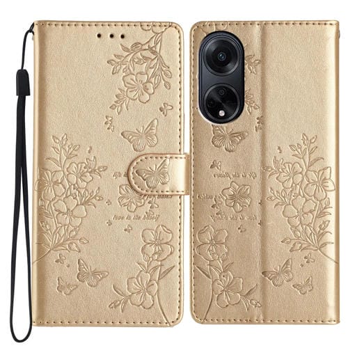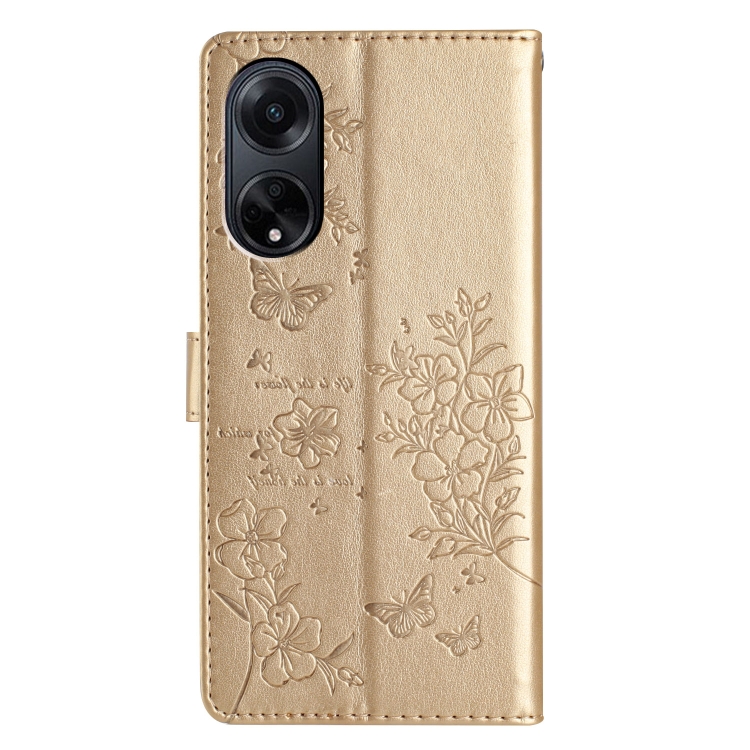 Para Oppo A98 Butterfly Love Flower Funda de Cuero para Teléfono En Relieve (Oro)