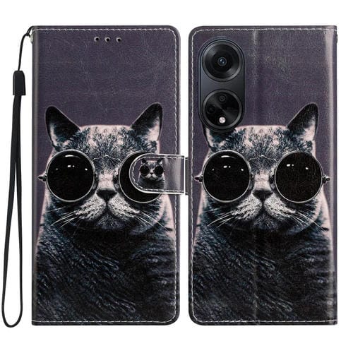Para Oppo A98 Funda de Cuero para Teléfono con Dibujo Coloreado (Gato de Gafas de Sol)
