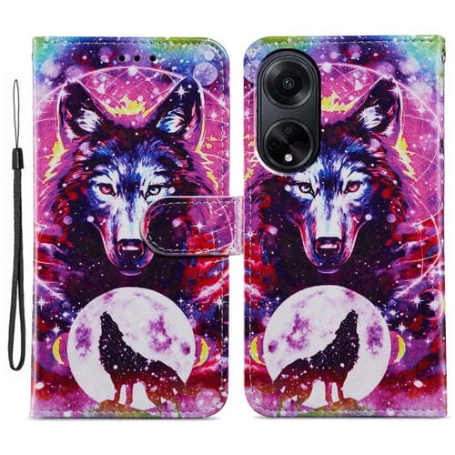 Para Oppo A98 Funda de Teléfono de Cuero con Tapa Horizontal con Patrón Pintado (Tótem de Lobo)