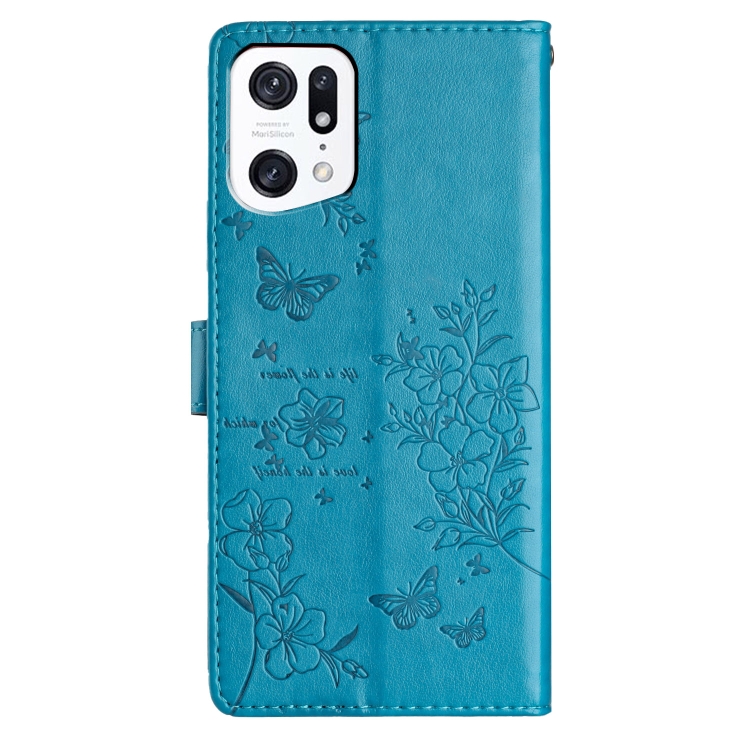 Para Oppo Find X5 Pro Butterfly Love Flower Funda de Cuero para Teléfono En Relieve (Azul)