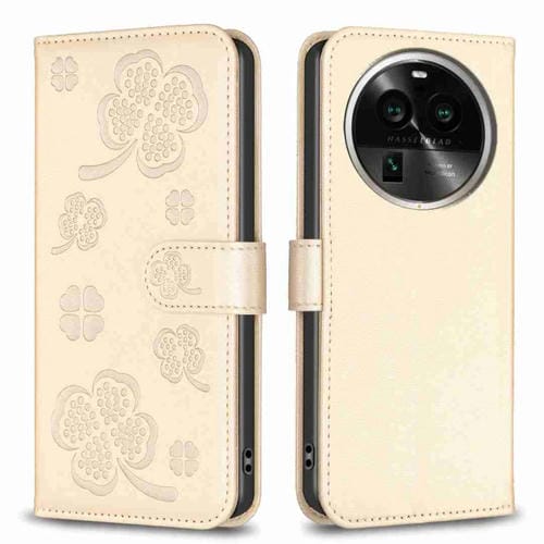 Para Oppo Find X6 Pro Funda de Cuero con Relieve de Cuatro Hojas para Teléfono (Dorado)