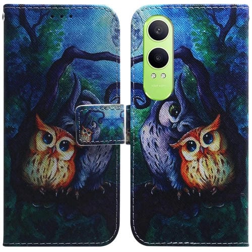 Para Oppo K12X Funda de Cuero con Tapa con Dibujo Coloreado (Búho de Pintura al Óleo)