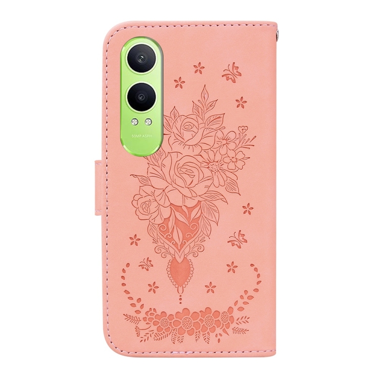 Para Oppo K12X Funda para Teléfono de Cuero con Relieve de Mariposa y Rosa (Rosa)