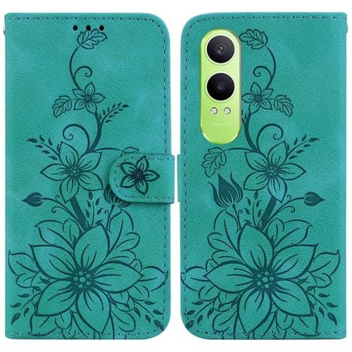 Para Oppo K12X Lily Funda de Cuero En Relieve para Teléfono (Verde)