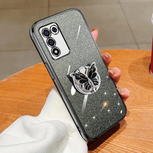 Para Oppo K9S Funda para Teléfono de TPU con Soporte de Mariposa con Brillo Degradado Plateado (Negro)
