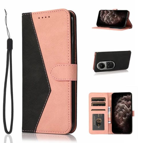 Para Oppo Reno10 5G / Reno10 Pro 5G Funda de Cuero para Teléfono con Costuras de Dos Colores Globales (Oro Rosa Negro)