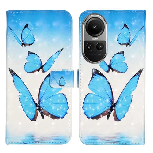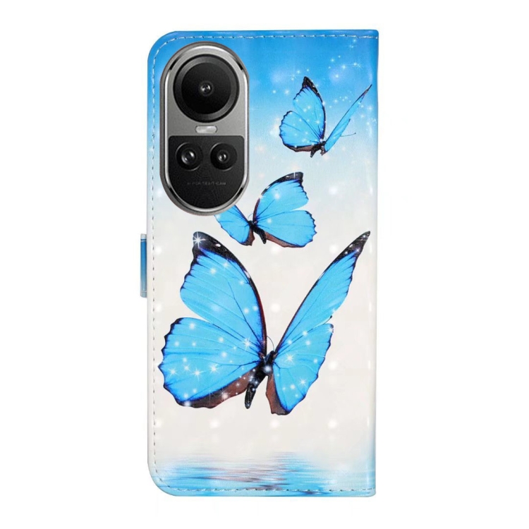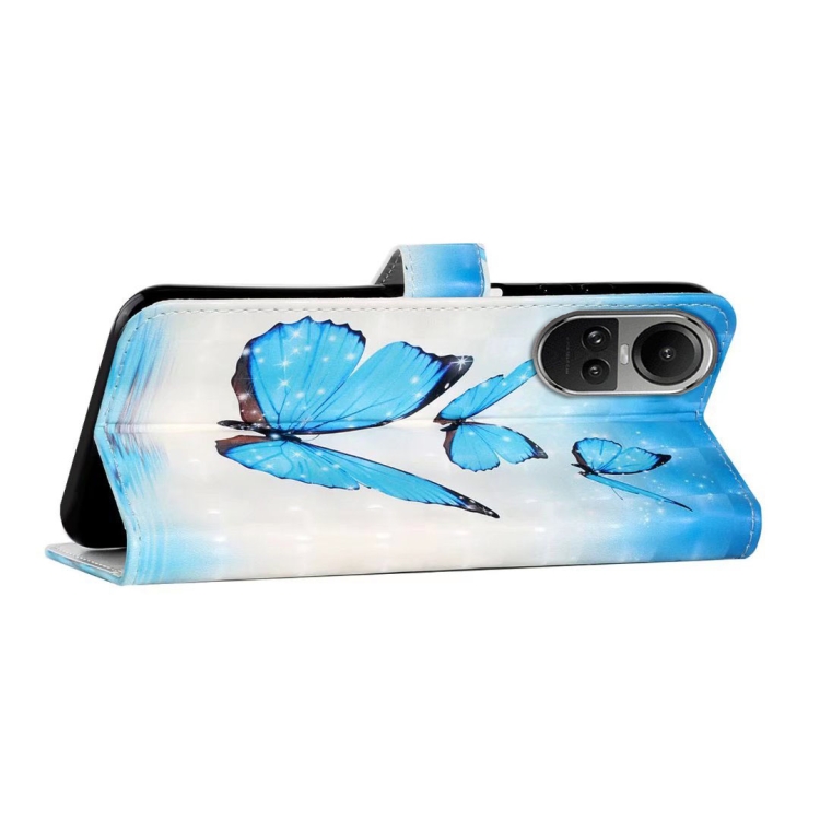 Para Oppo Reno10 5G / Reno10 Pro 5G Funda de Cuero para Teléfono con Dibujo 3D En Relieve de Aceite Global (3 Mariposas)