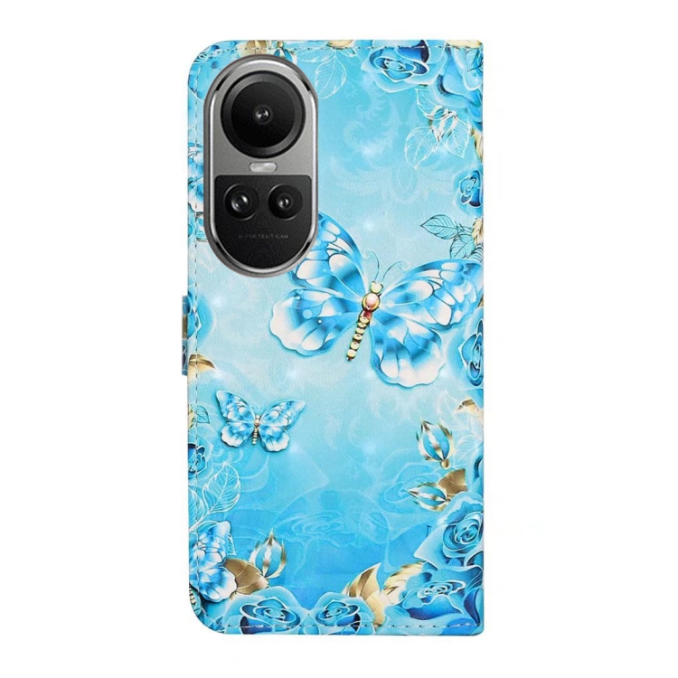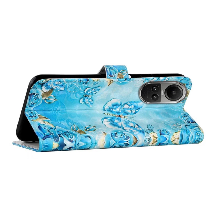 Para Oppo Reno10 5G / Reno10 Pro 5G Funda de Cuero para Teléfono con Dibujo 3D En Relieve de Aceite Global (Mariposas Azules)