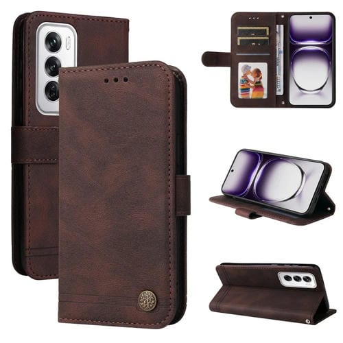 Para Oppo Reno12 5G Global Skin Feel Life Tree Funda de Cuero con Botón de Metal (Marrón)