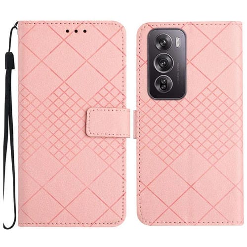 Para Oppo Reno12 Pro 5G Funda de Cuero para Teléfono con Textura de Rejilla Rómbica Global (Rosa)