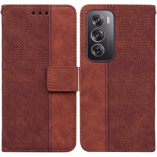 Para Oppo Reno12 Pro 5G Funda de Teléfono de Cuero con Relieve Geométrico Global (Marrón)