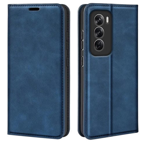 Para Oppo Reno12 Pro 5G Funda para Teléfono de Cuero con Succión Magnética de Piel Retro Global (Azul Oscuro)